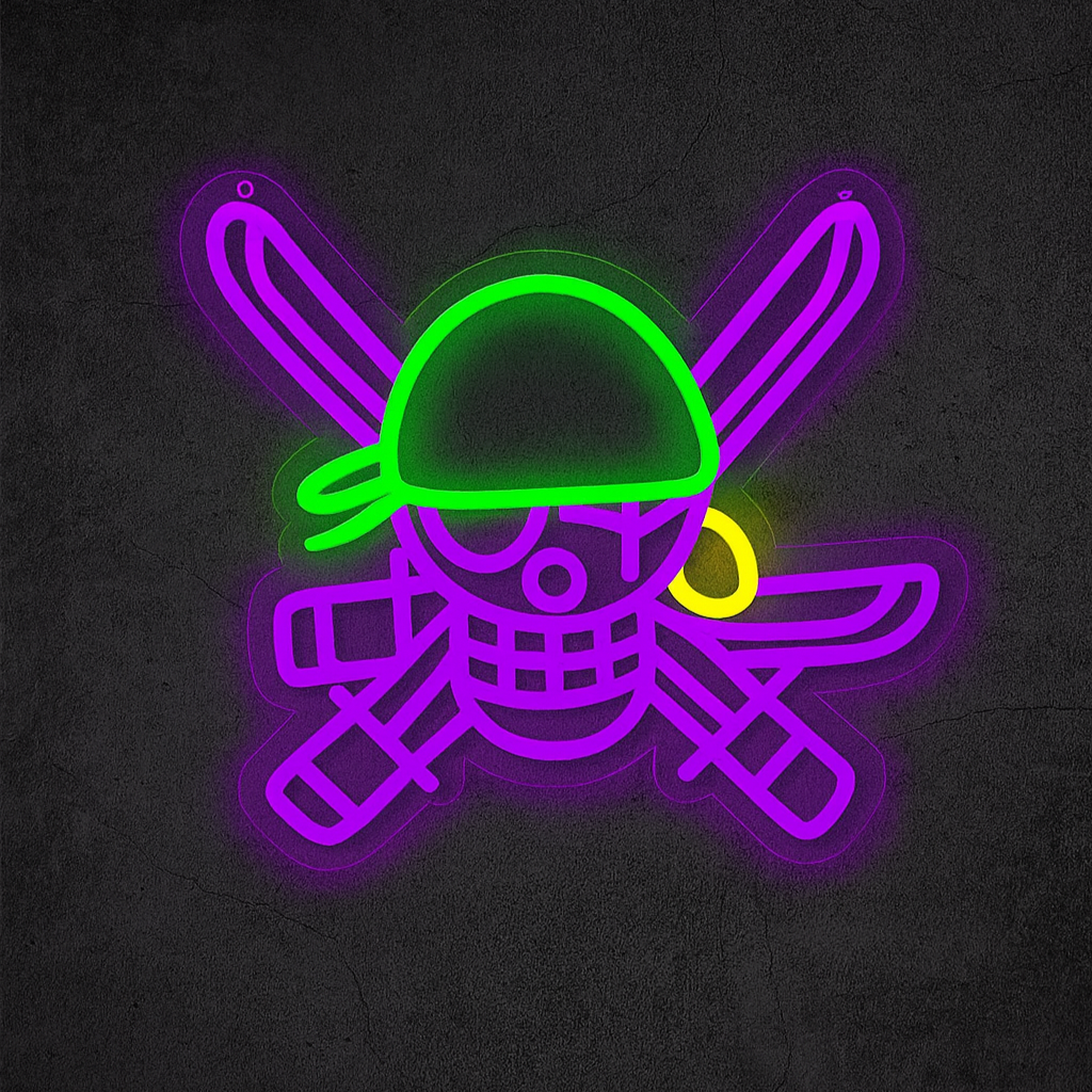 Le chasseur de pirates à trois sabres, fidèle second de Luffy et maître incontesté du bushido. Ce néon incarne sa détermination sans faille, sa loyauté et sa soif de devenir le meilleur épéiste du monde. Allume-le, et ressens la puissance tranquille du sabreur au regard d’acier.