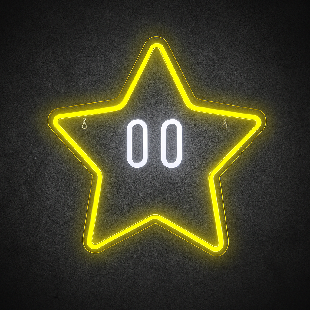 Icône mythique de l’univers Nintendo, l’étoile confère puissance et invincibilité à ceux qui la touchent. Ce néon capture toute son énergie lumineuse et sa magie rétro, parfait pour une déco qui brille de nostalgie. Allume-le, et deviens imbattable… au moins en style